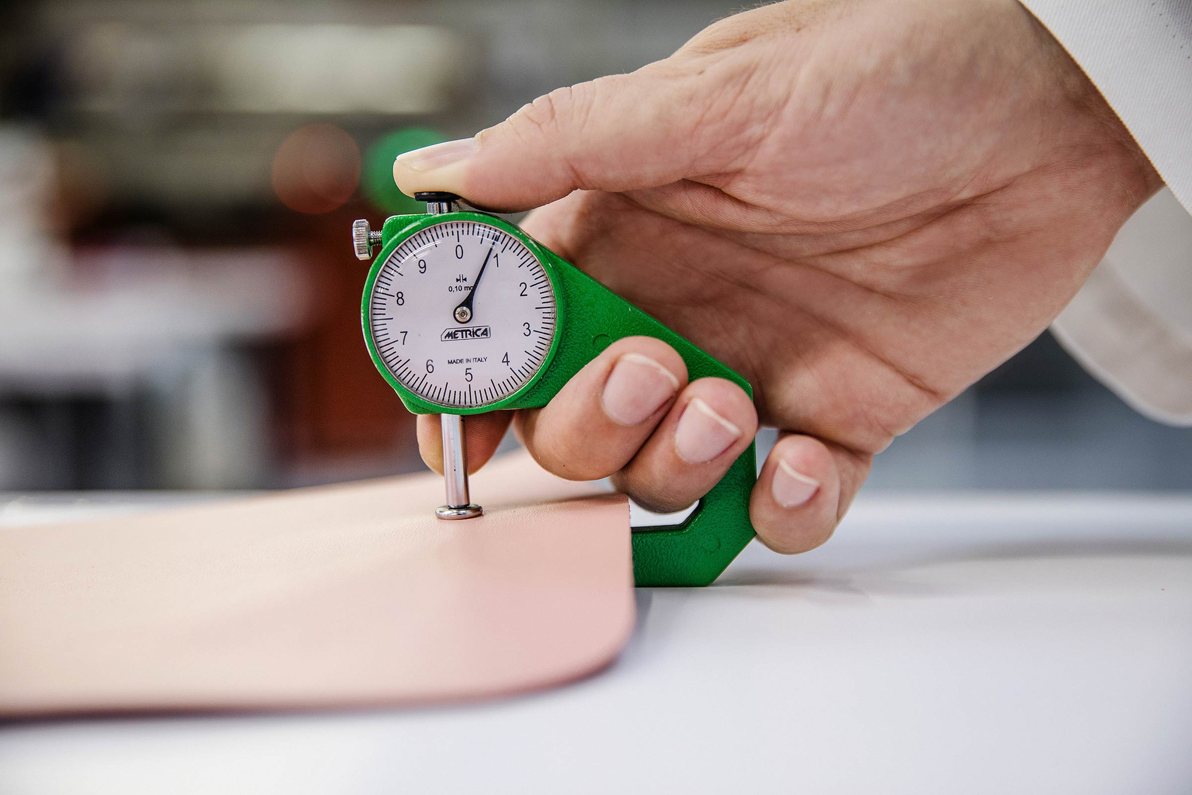 The scent of leather fills the atelier as each hide, sourced from certified Italian tanneries, is carefully examined. Every piece is evaluated by hand, with close attention to its surface, texture, and integrity. Only the finest selections are chosen, ensuring that each handbag begins with material of the highest quality.